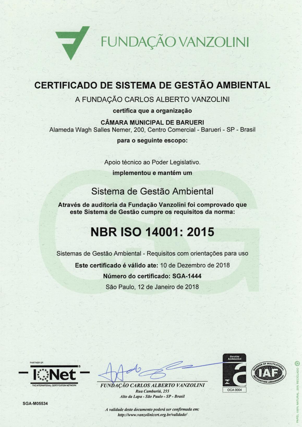 Certificado ISO 14001:2015