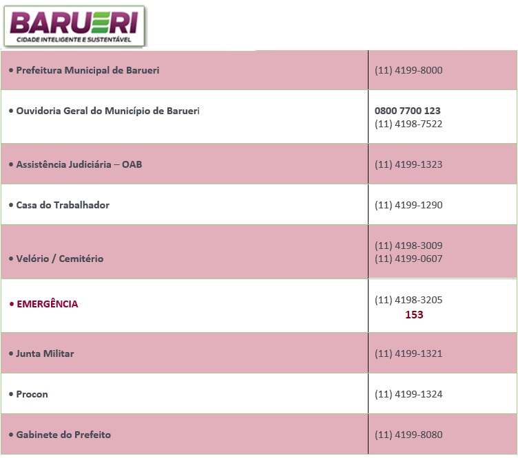 Formas de acesso e requisitos: (11) 4199- 7963 ou comunicacao@barueri.sp.leg.br.